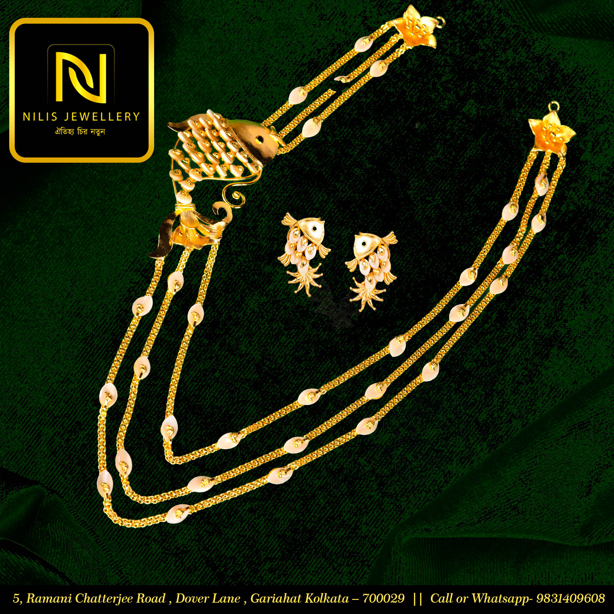 Grace your festive or bridal look with this elegant 3-layer Lahari, crafted in pure mother of pearl with exquisite fish-inspired detailing.